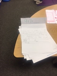 Students worked together today to use a number sentence and write the word problem to match. After time was given, we rotated and students solved the problem. It was great to see all disciplines work together, reading, writing math and collaboration. We will do this again tomorrow using problems that have start and change missing. Stayed tuned for more samples of this higher level thinking.